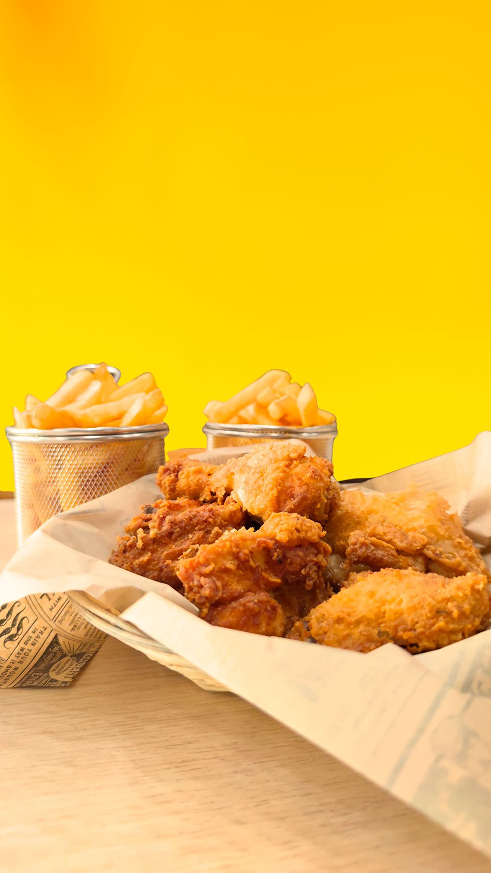 6 piezas de delicioso pollo frito Pinky crujiente por fuera y jugoso por dentro pollo +