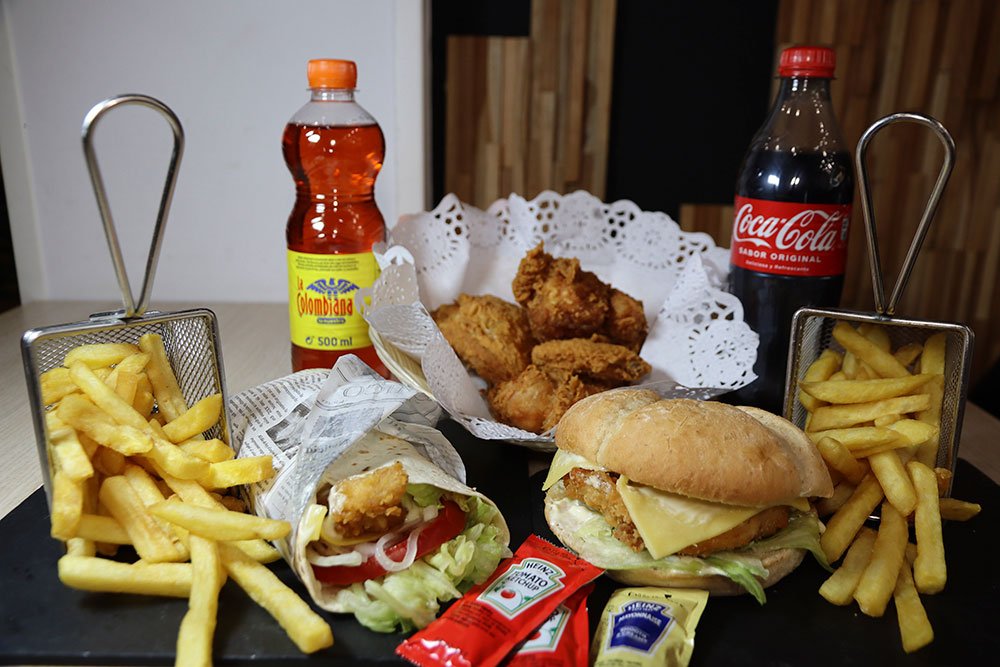 Pero eso no es todo: también puedes elegir entre una hamburguesa de pollo o un wrap para completar tu festín.